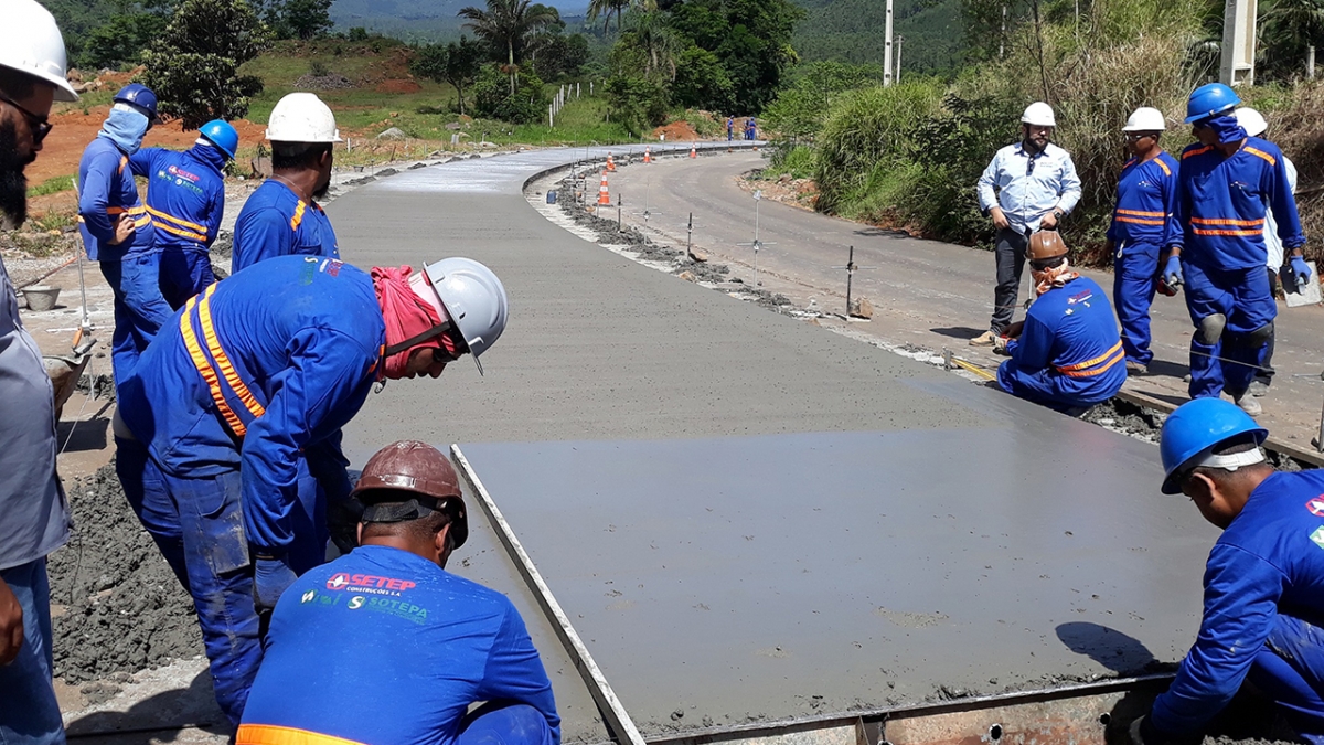 No final de novembro foi iniciada mais uma etapa da pavimentação da serra. As placas de concreto de cimento Portland possuem 22 centímetros de espessura e são colocadas por cima da sub-base de concreto compactado a rolo (CCR) com o auxílio de uma pavimentadora - máquina que aplica o material e faz o nivelamento da pista - em faixas de 3,5 metros de largura. A cada cinco metros, barras de transferência são posicionadas nas juntas transversais e longitudinais, permitindo a correta transferência dos esforços entre as placas de concreto e restringindo o empenamento. O prazo para o material atingir a resistência de projeto é de 28 dias.