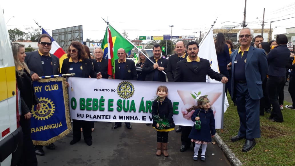O Rotary, como se sabe, é mantenedor do Lar do Idoso, além de outros projetos de grande valia para o município e comunidade em geral. O destaque desse feriado, no entanto, ficou por conta da divulgação do projeto “o bebê e sua árvore”, desenvolvido pelo Rotary já há alguns anos em parceria com o Hospital Regional, onde cada criança que nasce é presenteada com uma muda de árvore e uma plaquinha com o nome do recém-nascido e os logotipos das empresas que apoiam a iniciativa. No desfile do dia 7 de Setembro, uma faixa trazia a frase “O bebê e sua árvore! Eu já plantei a minha, e você?”, fazendo alusão à importância da preservação da natureza. Em frente à faixa, crianças levavam algumas mudas, chamando ainda, mais atenção. Segundo o responsável pelo projeto, Luciano Oliveira, foi uma ótima oportunidade para mostrar ao público o belo trabalho de conscientização ambiental que o Rotary vem desenvolvendo no município. A mesma opinião é compartilhada pelo presidente da entidade, Marcelo Soares, também um grande incentivador do projeto “o bebê e sua árvore”.