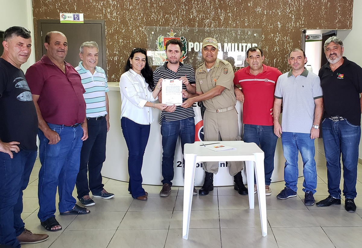 A prefeita em exercício, Gislaine Dias da Cunha, assinou na tarde desta quinta-feira (4), na sede da Polícia Militar de Sombrio, mais uma ordem de serviço para pavimentação. A obra é voltada à qualidade e à agilidade do atendimento da PM aos cidadãos.