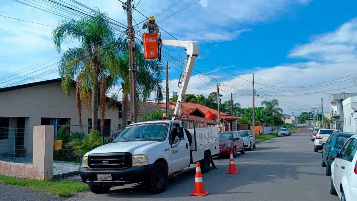 Nesta semana, a Rua João Quartiero, no bairro Parque das Avenidas, recebeu 37 novas lâmpadas. A via, que já recebeu uma nova pavimentação, ainda passará por sinalização e pintura em breve. Além disso, a Servidão Valério da Cunha, também no Parque das Avenidas, teve oito lâmpadas substituídas.