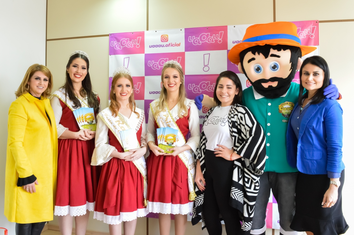 Na manhã desta quarta-feira (31) a UAAAU recebeu visitantes ilustres na redação. Uma comitiva, formada para divulgar a 24ª Festa do Colono e a 16ª Arrancada Catarinense de Tratores esteve na sede do Portal de Notícias. Durante a visita, foi feita uma transmissão ao vivo no Facebook da qual participaram a rainha do evento, Dandara Lodetti, as princesas Roberta Kalandia Daminelli e Maria Luiza Rovaris, bem como o mascote oficial, a primeira-dama Luciane Zilli e a coordenadora da subcomissão de comunicação do evento, Cíntia Brígido.