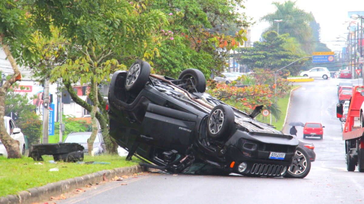 Uma câmera captou o exato momento em que um veículo capotou em Araranguá, na manhã desta quinta-feira.