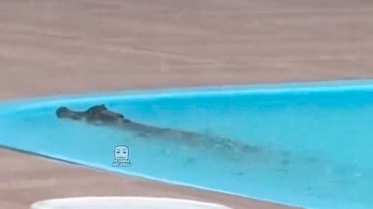 Moradora de Sambaqui encontra jacaré em piscina de casa.
