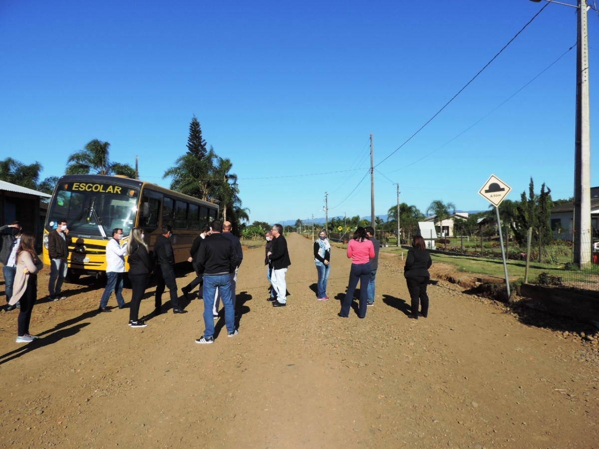 A comitiva iniciou a rota no Distrito de Morro Chato, onde está sendo feito o levantamento de quatro ruas, quase 1 km de vias, para posterior asfaltamento. Seguiu pela comunidade de Linha Contessi visitando os serviços finais do levantamento de trecho da rodovia TVO Afonso Bendo e da ciclovia, quase R$ 3 milhões de investimentos somente nesta comunidade. Também fizeram uma pausa no Parque de Exposições para verificar a finalização das duas etapas da revitalização da estrutura e que em breve começa a etapa 3 para finalizar 100% a reestruturação interna do Parque.