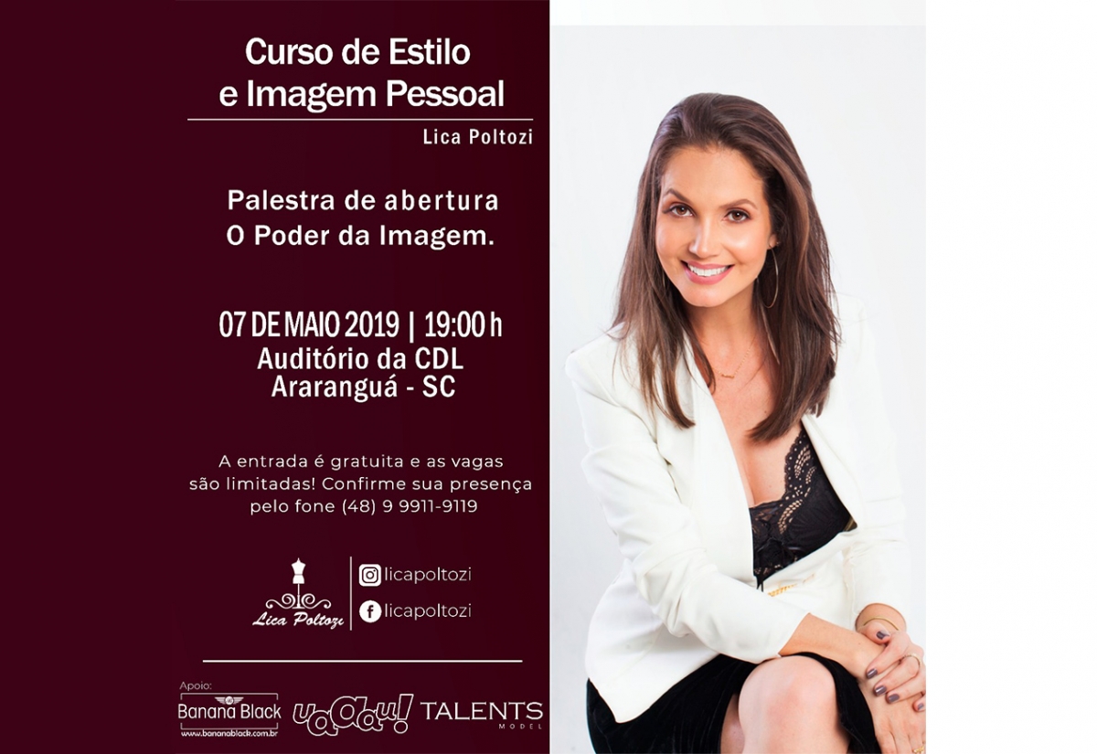 Dia 7 Maio, retorno à Araranguá com a palestra "gratuita" de abertura do Curso de Estilo e imagem pessoal.