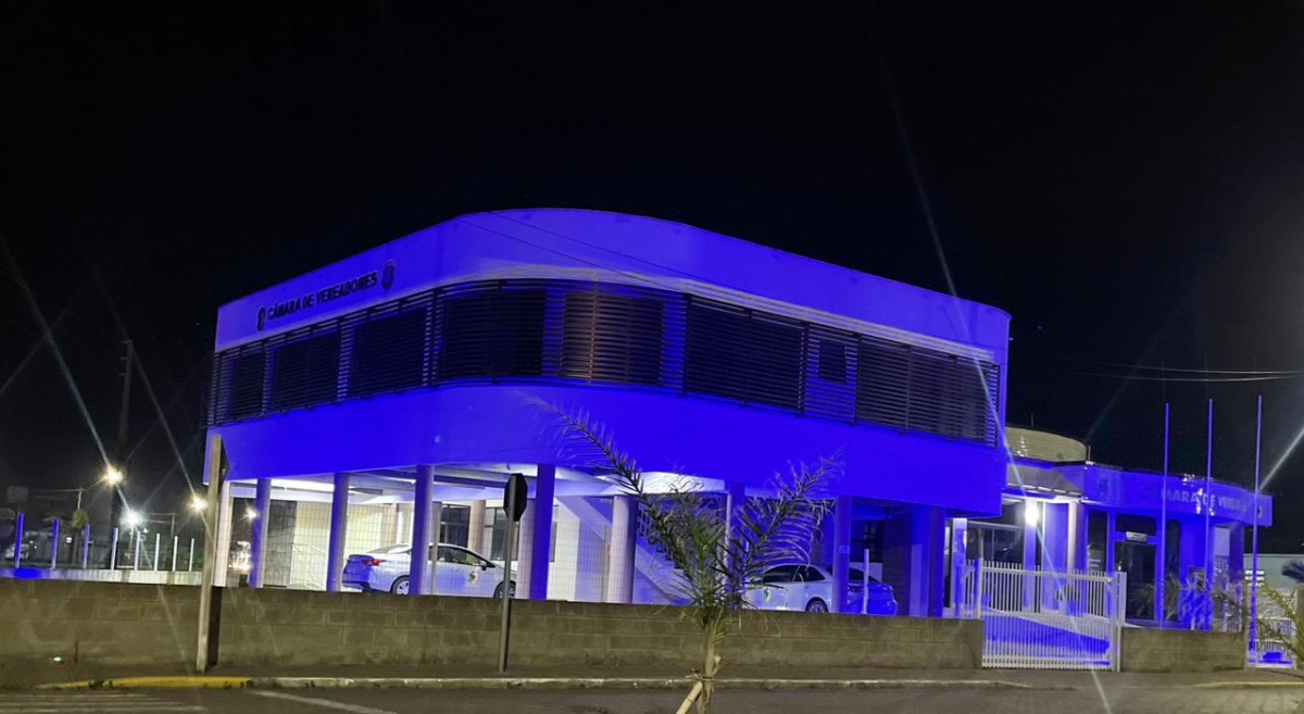 A Câmara de Vereadores de Balneário Arroio do Silva está iluminada na cor azul desde a noite desta quarta-feira (01), em alusão ao mês de conscientização sobre o Transtorno do Espectro Autista (TEA).
