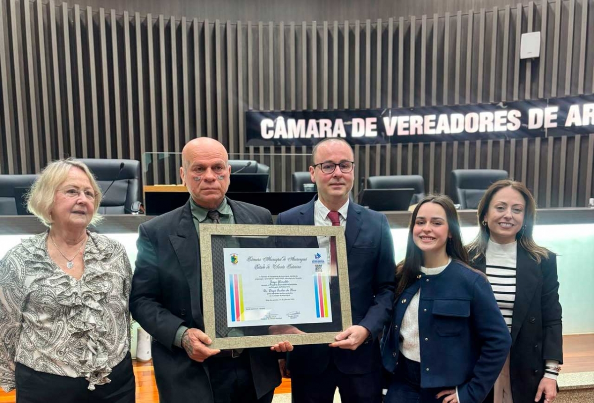 Na Tribuna, o homenageado agradeceu à cidade e aos parceiros institucionais, e fez um discurso emocionado: "Araranguá nos proporcionou tudo - trabalho, amigos que se tornaram família e raízes que se consolidaram. Receber esse título é mais do que uma honraria, é um certificado de pertencimento, de que essa terra me reconhece como um dos seus, e isso é impagável. Estendo meus agradecimentos à Câmara de Vereadores por esta comenda especial, e ao vereador Jorge Ghiraldo, um veterano de guerra, pela iniciativa. Divido esta homenagem com os colegas da Polícia Civil e com todos que colaboram diariamente para manter a engrenagem da segurança pública em movimento, mesmo diante das adversidades. Presto aqui também minha homenagem ao meu saudoso pai, generoso por natureza, culto por essência, educado em cada gesto. Ele me ensinou que a verdadeira simplicidade reside na forma como tratamos as pessoas. Agradeço à minha mãe, presente aqui hoje — uma mulher batalhadora, resoluta e destemida, que me ensinou o valor da responsabilidade. À minha esposa, minha parceira em todos os momentos, que me emprestou apoio e coragem e nunca me cobrou. À minha filha, minha inspiração e um dos maiores motivos que tornaram Araranguá o nosso lar. Aos amigos e araranguaenses que nos acolheram com carinho, meu muito obrigado."