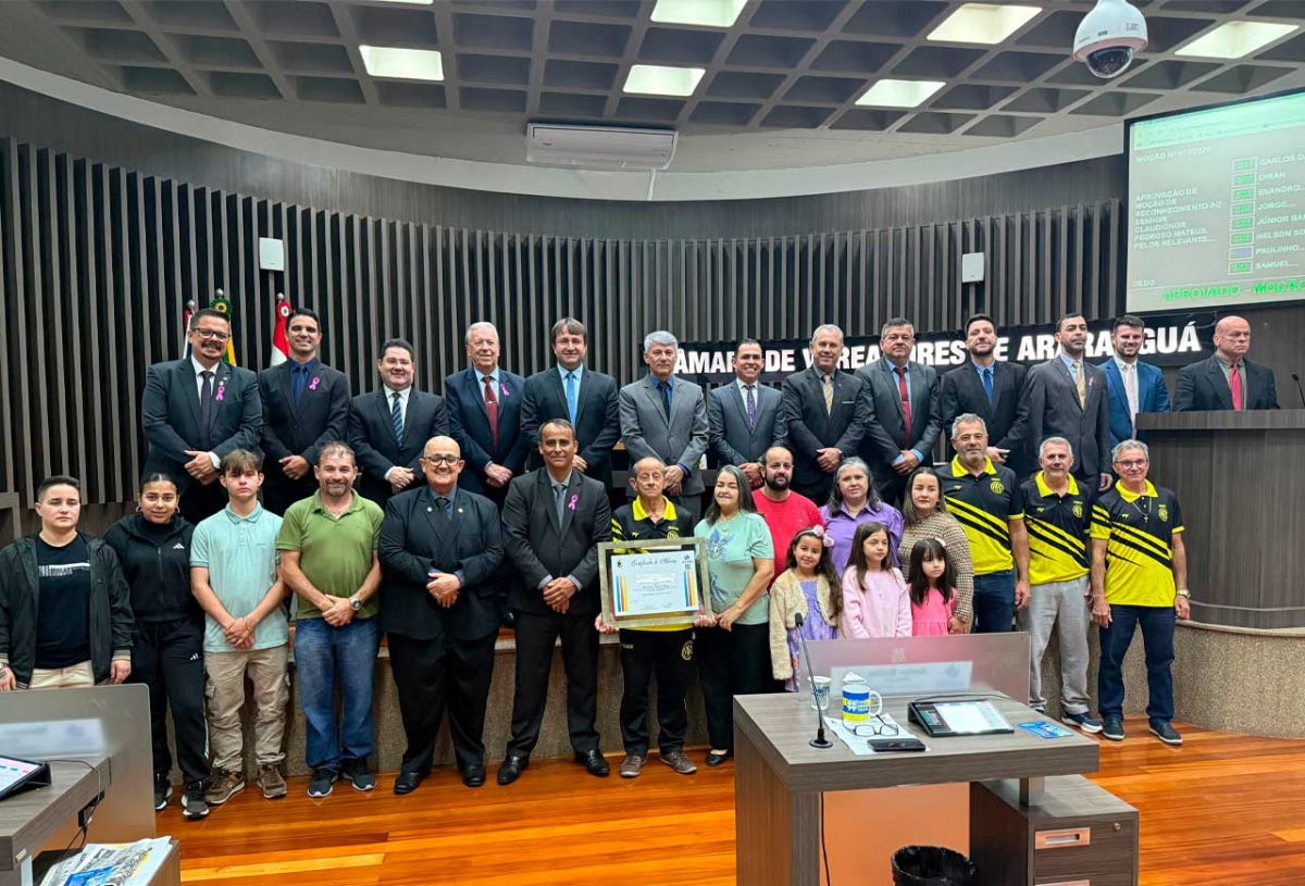 A Câmara de Vereadores de Araranguá aprovou, por iniciativa do vereador Dédo, a Moção nº 052/2025, concedendo reconhecimento a Claudionor Pedroso Mateus pelos relevantes serviços prestados à comunidade da Sanga da Toca II e ao município de Araranguá.