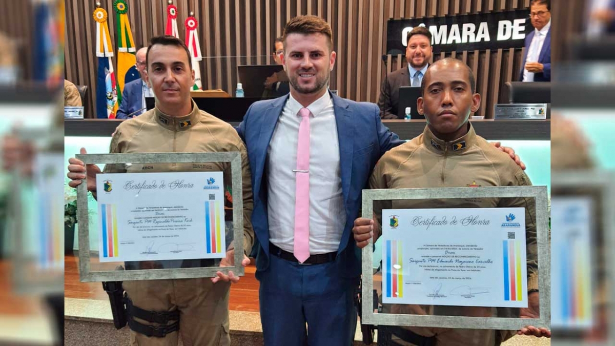 Durante a sessão de segunda, 04, a primeira de Março, uma Moção de Reconhecimento emocionou quem estava na Câmara de Vereadores. Tudo porque os policiais militares araranguaenses Sargento Reginaldo Pereira Koch e Sargento Eduardo Nazareno Carvalho foram reconhecidos por um ato de bravura com uma homenagem de autoria do vereador, Diran.