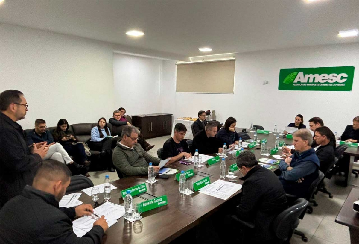 A Associação dos Municípios do Extremo Sul Catarinense (AMESC) reuniu na manhã desta quarta-feira (20), em sua sede, os prefeitos dos municípios associados para a Assembleia Geral Ordinária do mês de agosto. A reunião foi conduzida pela presidente da entidade e prefeita de Sombrio, Gislaine Dias da Cunha, e teve como pauta temas estratégicos voltados ao fortalecimento da região.