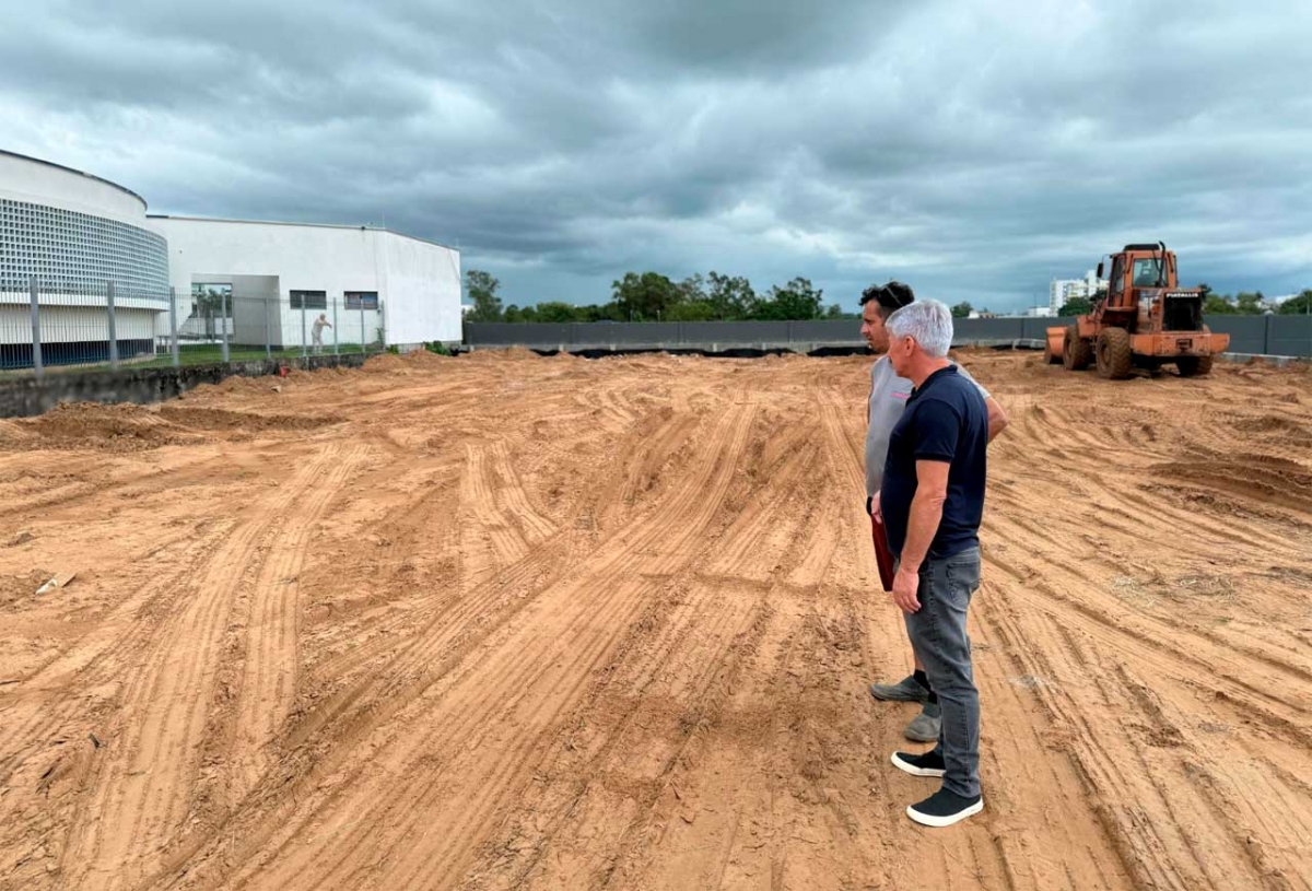 No retorno das atividades legislativas de 2026, na tarde desta segunda-feira (12), o presidente da Câmara de Vereadores de Araranguá, vereador Paulinho Souza, realizou uma vistoria técnica nas obras do novo estacionamento da Casa Legislativa.