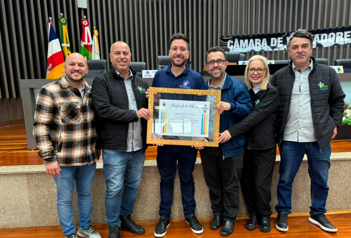 A direção do Sindicato dos Trabalhadores em Estabelecimentos de Saúde de Criciúma e região (Sindisaúde), recebeu na última segunda-feira, 22 de setembro, a Moção de Reconhecimento pelos serviços prestados à categoria da saúde pelos 50 anos de fundação, 26 de setembro de 1975. A Moção foi indicada pelo vereador Samuel Nunes, o Samuca e aprovada pela Câmara de Vereadores de Araranguá no dia 15 de julho deste ano.