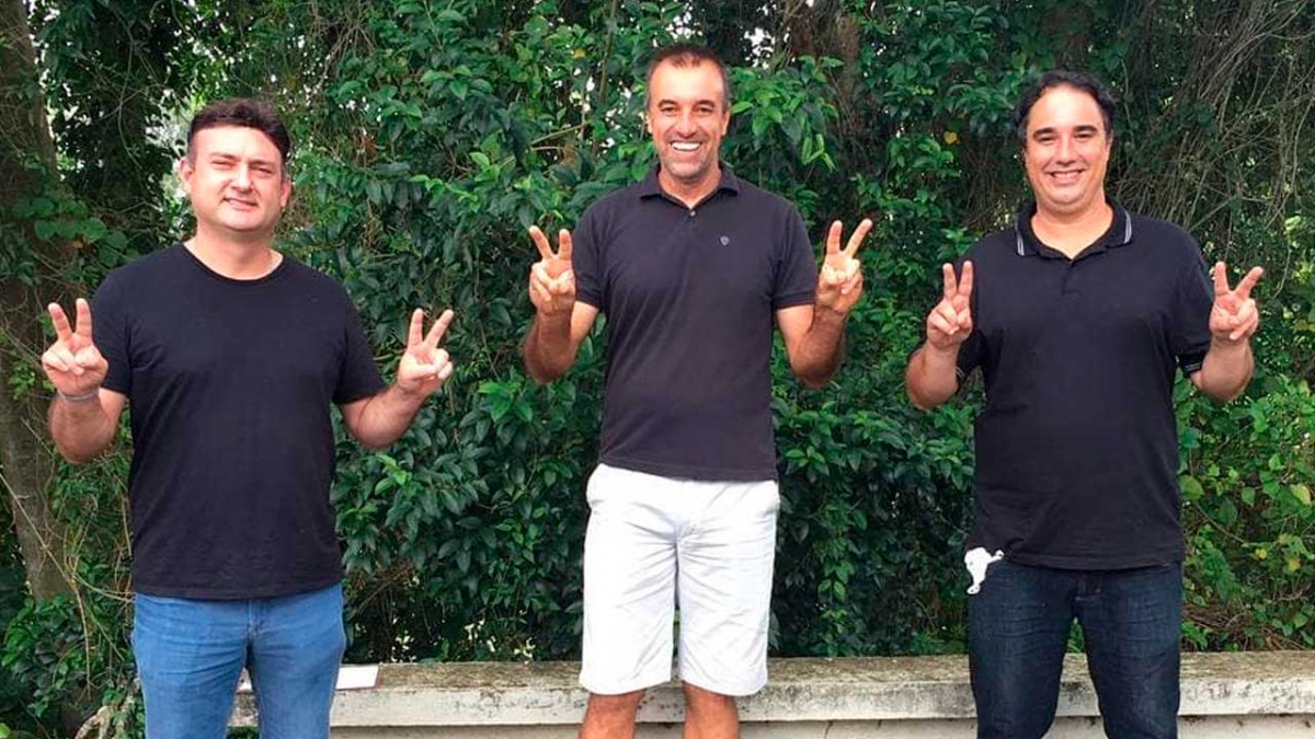 Na foto, Pessi tem a companhia do ex-vereador araranguaense e candidato a prefeito em 2020, Igor Batista (PL) e o presidente do PL de Araranguá, Adriano Guimarães.
