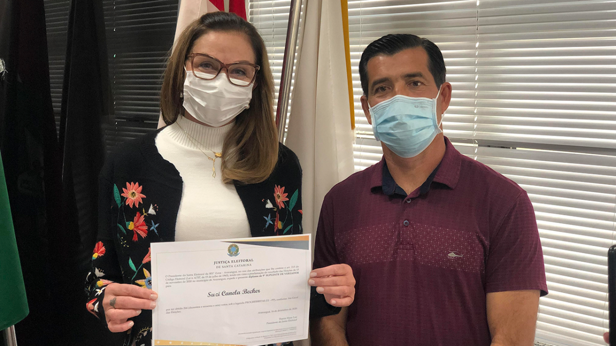 Aconteceu na tarde desta sexta-feira (14) na Câmara Municipal de Vereadores de Araranguá a posse da suplente de vereadora Suzi Canela Becker, do Progressistas. A empresária assume por trinta dias uma cadeira no Poder Legislativo na vaga do titular, o vereador Márcio Tubinho.