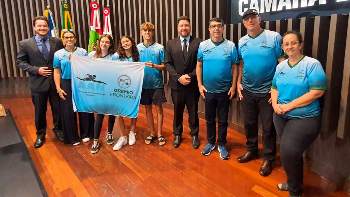 Membros da Associação Araranguaense de Natação – AAN, participaram da sessão de segunda, 26, na Câmara Municipal quando foi reconhecida a sua utilidade pública pelos vereadores.