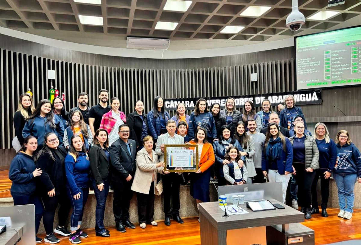Na noite desta quarta-feira (13), a Câmara de Vereadores de Araranguá prestou uma homenagem marcante ao Colégio Extensão X / Xodó da Tia Joyce, com a aprovação unânime da Moção de Reconhecimento e Aplausos Nº 033/2025, de autoria do vereador Joel Casagrande. O motivo do reconhecimento foi a conquista do 1º lugar nacional no Prêmio de Maior Engajamento Socioemocional do País, entre mais de 1.000 instituições de ensino, em evento realizado em maio deste ano, em São Paulo.