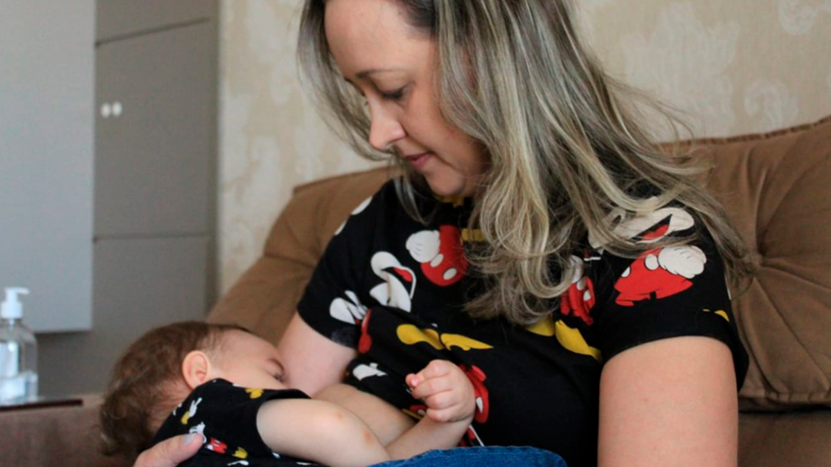 Um exame mostrou que uma criança de 2 anos e 2 meses adquiriu anticorpos contra o coronavírus através da amamentação. A fisioterapeuta Maryucha Miranda de Oliveira, de 38 anos, recebeu as duas doses da vacina da AstraZeneca e continuou amamentando o filho. Mãe e filho são de Tubarão (SC).