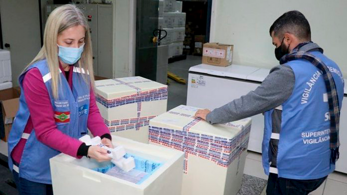 A distribuição começou a partir das 7h30, com o envio, via terrestre, das doses para as centrais da Grande Florianópolis, Tubarão, Criciúma, Araranguá, Blumenau, Jaraguá do Sul, Joinville, Itajaí, Lages e Rio do Sul.