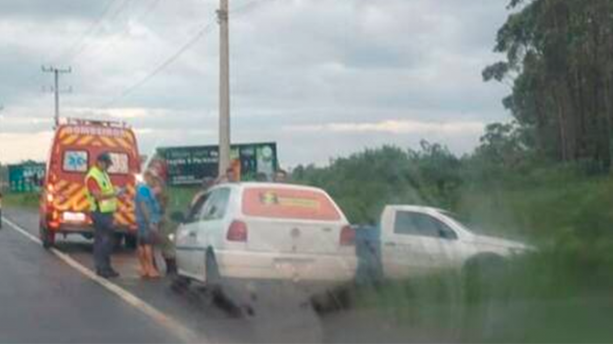 Chegando no local, a guarnição constatou uma colisão lateral envolvendo dois automóveis, sendo que a passageira de um dos carros estava com fortes dores no peito e foi conduzida pelo Corpo de Bombeiros ao hospital, já seu esposo, o condutor do veículo relatou que estava transitando na Rodovia José Tiscoski sentido Balneário Gaivota, quando, de repente, um veículo que transitava no sentido contrário perdeu o controle e colidiu contra seu veículo.