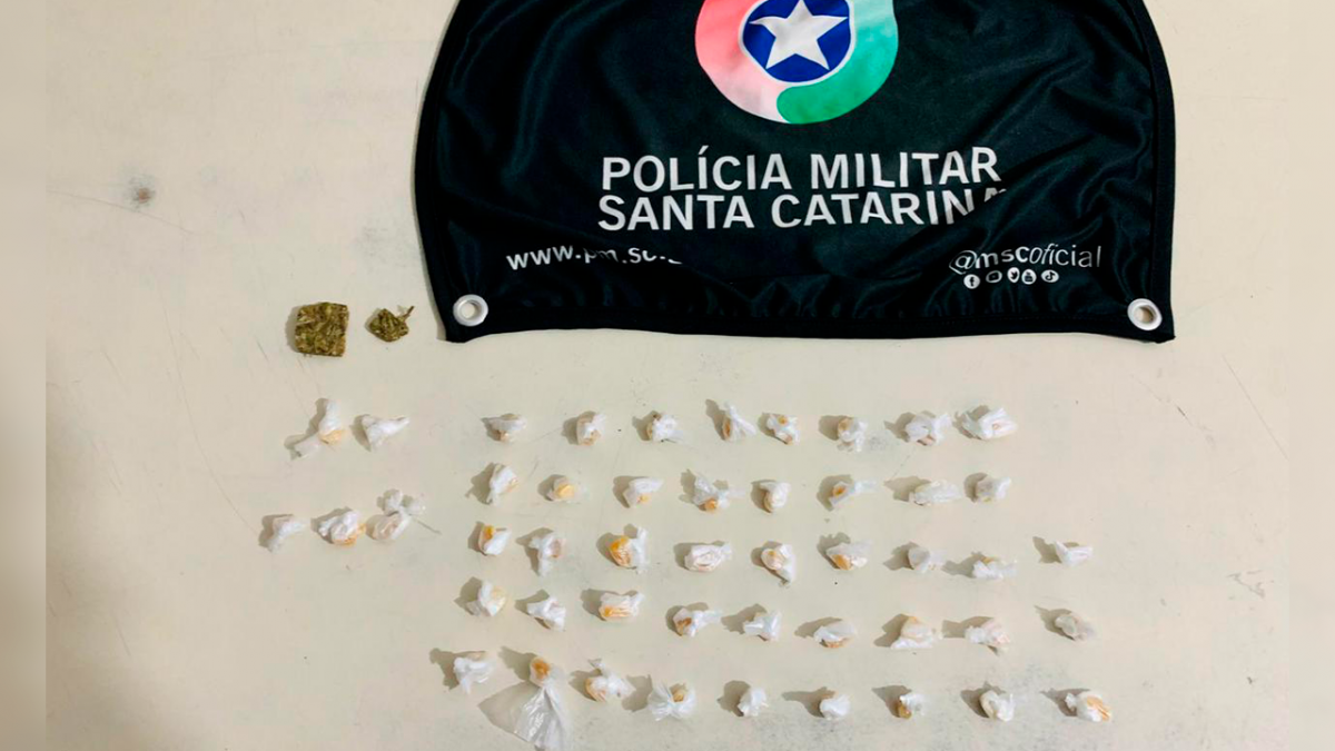 Os abordados foram identificados e com um adolescente foram encontradas 43 pedras de crack, que o mesmo afirmou ser proprietário, tendo dispensado mais algumas pedras no interior da residência e corrido, pois estava com a droga.