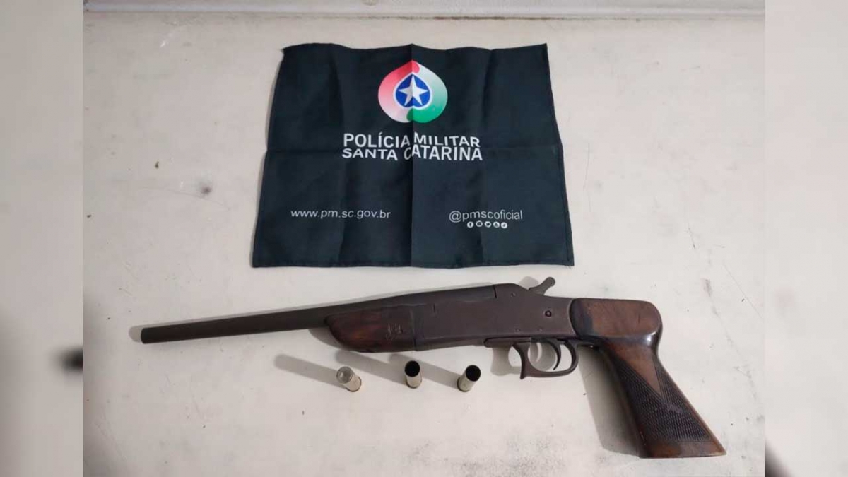 Os policiais localizaram uma espingarda calibre 36, uma munição intacta, e duas capsulas vazias. Diante dos fatos a arma foi apreendida, e entregue na Central de Polícia de Araranguá, não sendo conduzido o proprietário pois não estava no local.