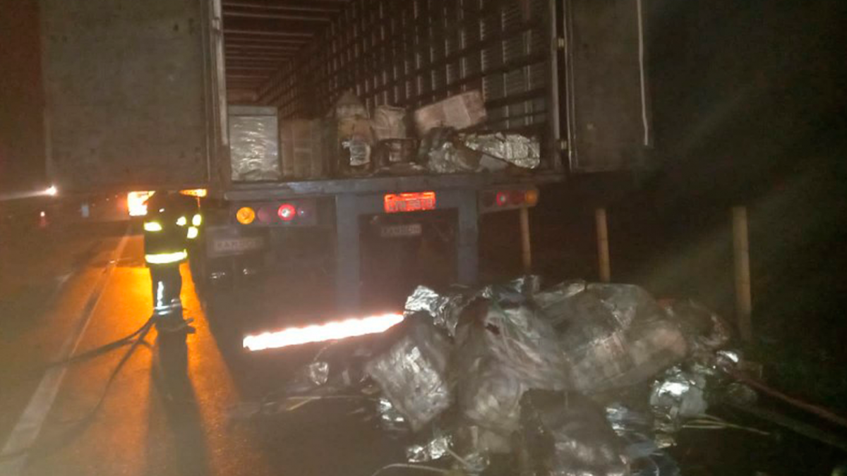 Um incêndio destruiu parte da carga de uma carreta na madrugada desta quinta-feira, dia 8, na BR-101 em Içara. A ocorrência foi registrada por volta das 4 horas, no bairro Vila Nova. De acordo com o Corpo de Bombeiros, quando a guarnição chegou no local, o motorista, 27 anos de idade, já havia desengatado o caminhão. As chamas atingiram os pneus do eixo do meio e parte da carga que estava no interior do baú.