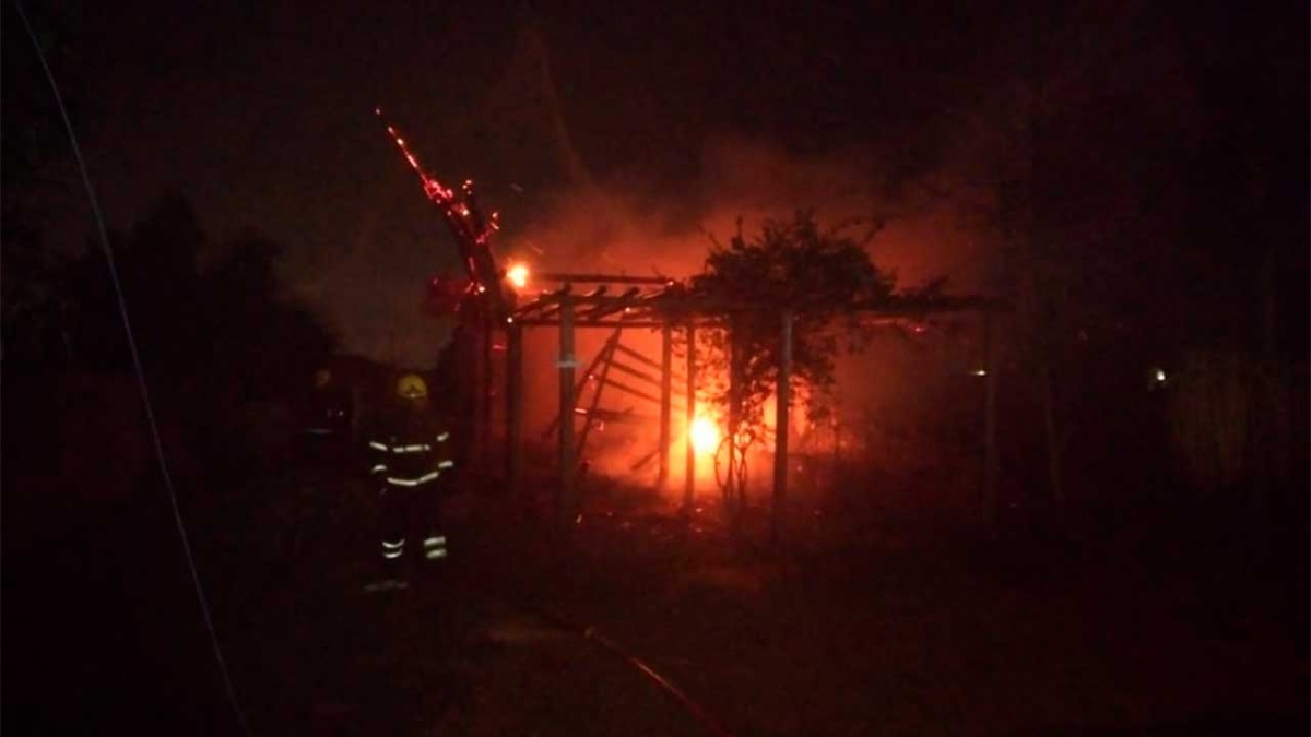 Bombeiros Militares de Araranguá foram acionados via COBOM para atender a uma ocorrência de edificação em chamas na cidade de Balneário Arroio do silva.