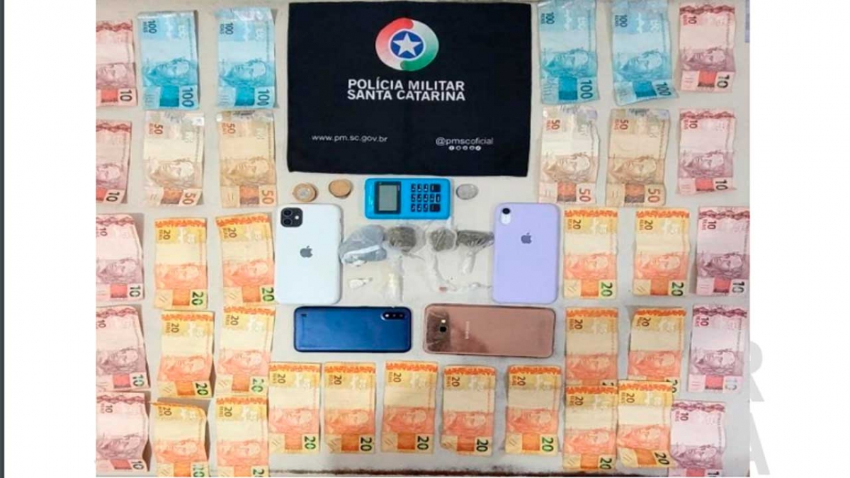No entanto, parte dos entorpecentes foi recuperada, e, ao revistarem a casa, encontraram os seguintes itens: R$ 1.059,50 em dinheiro trocado; uma máquina de cartão de crédito escondida dentro de um guarda-roupa; quatro celulares; duas porções de crack; quatro de maconha e duas de cocaína.