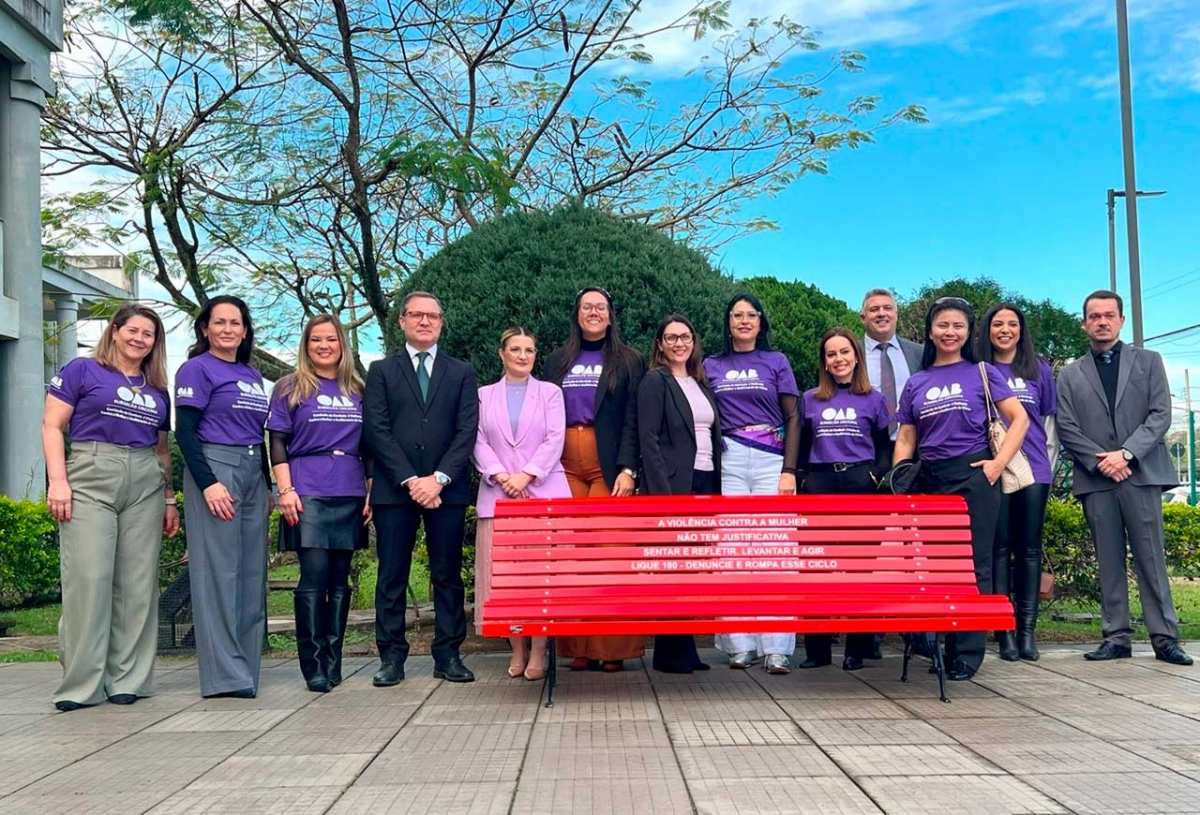 Fazendo coro à campanha Agosto Lilás, a OAB Subseção Criciúma, por meio da Comissão de Combate à Violência contra a Mulher e Acolhimento da Vítima, inaugurou nesta quinta-feira, 07, o primeiro Banco Vermelho de Santa Catarina. A instalação é permanente e está localizada no Fórum da Comarca de Criciúma, em uma ação que integra o movimento nacional de conscientização sobre a violência contra a mulher e busca transformar a dor em luta.