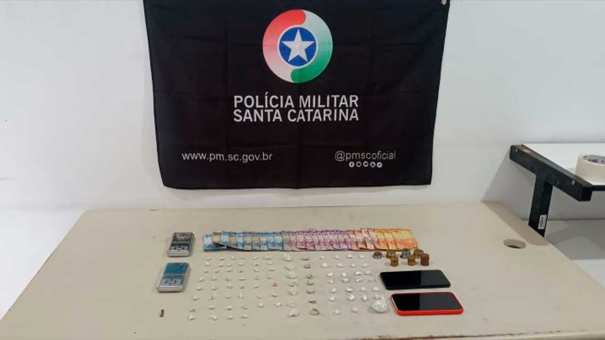 Em revista pessoal, foi localizado com o abordado cerca de cinco gramas de cocaína.