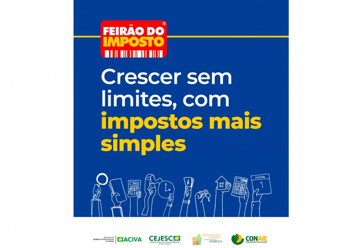 Feirão do Imposto 2025: por menos siglas complexas e mais consciência. Araranguá, por meio da ACIVA, faz parte desse movimento. Vamos em busca de crescimento sem limites, com impostos mais simples.