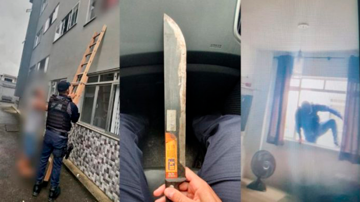 Uma mulher grávida foi ameaçada pelo companheiro com um facão e, para tentar fugir das agressões, ameaçou se jogar da janela do segundo andar, em Itajaí, Litoral Norte de Santa Catarina. Ela foi resgatada e o suspeito preso nesta terça-feira, dia 21, pela GMI (Guarda Municipal de Itajaí).