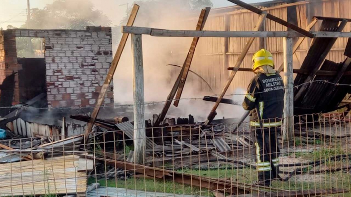Um incêndio destruiu uma casa em Balneário Gaivota entre a madrugada e início da manhã desta quarta-feira, dia 28. Os bombeiros foram acionados por volta das 6h05 e, ao chegar no local, constataram o fogo em fase de desenvolvimento completo, atingido todo o imóvel de cerca de 60m²