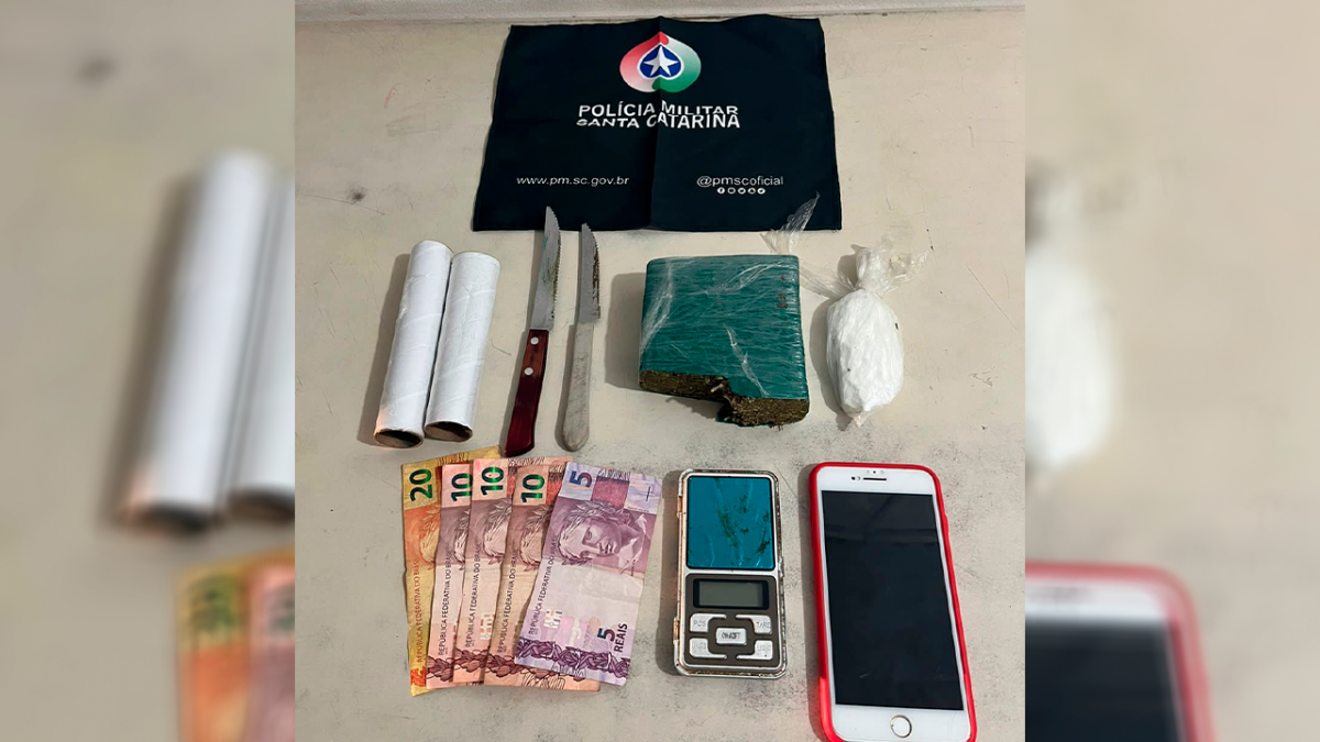 Conforme os militares, no local da prisão foram encontrados materiais para embalar os entorpecentes e uma balança de precisão. Um celular e R$ 55 em dinheiro também foram apreendidos.