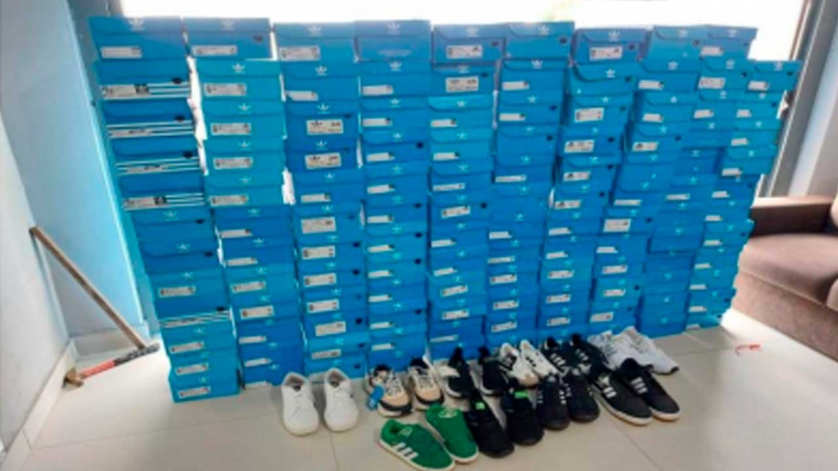 Após a verificação inicial, foram apreendidos os seguintes produtos: 170 pares de tênis similares à marca Adidas, 120 pares de chinelos similares à marca Havaianas, 149 pares de calçados similares à marca Vans, 30 pares de calçados similares à marca La Costi, 54 pares de calçados similares à marca Verdi, 30 pares de calçados similares à marca New balance, 169 pares de calçados similares à marca de Nike.