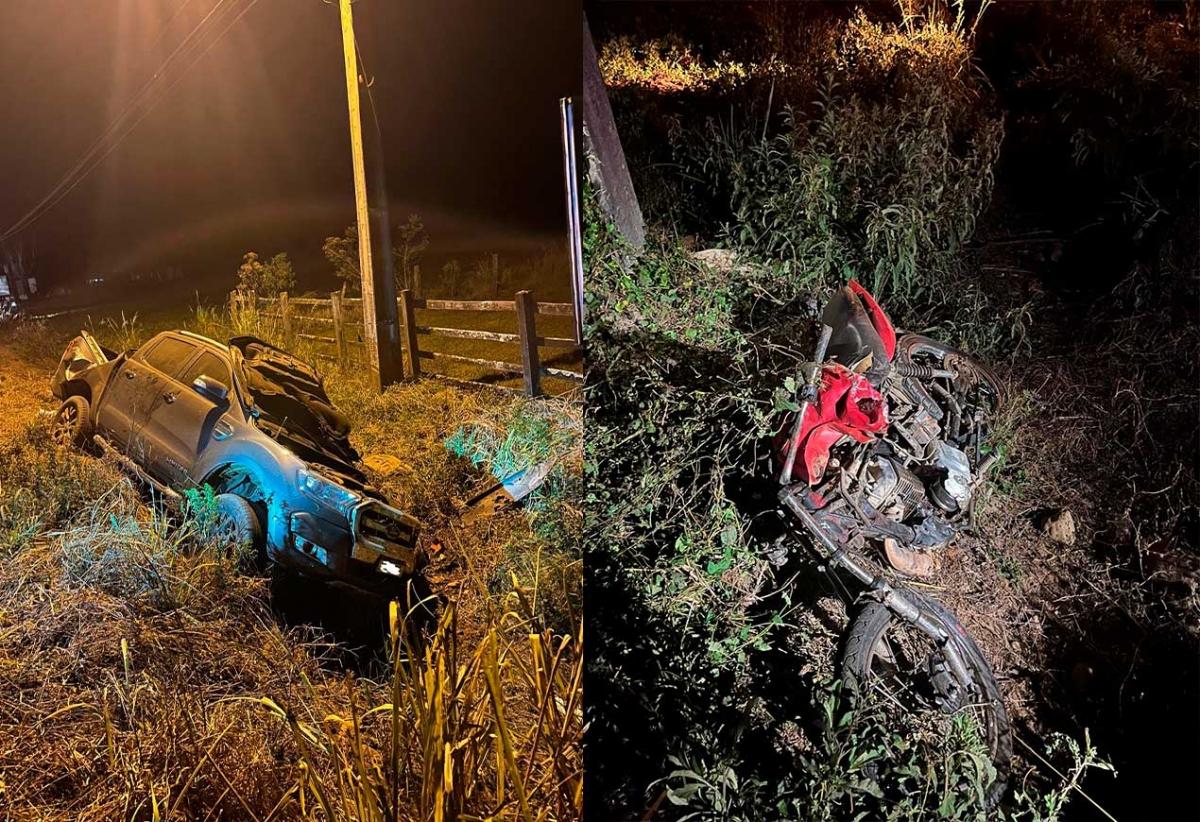 Ford Ranger acabou em uma morte e dois feridos na noite deste domingo (18), em Turvo. De acordo com os bombeiros, a colisão aconteceu na SC-285, por volta das 18h25, na localidade de Rodeio de Areia.