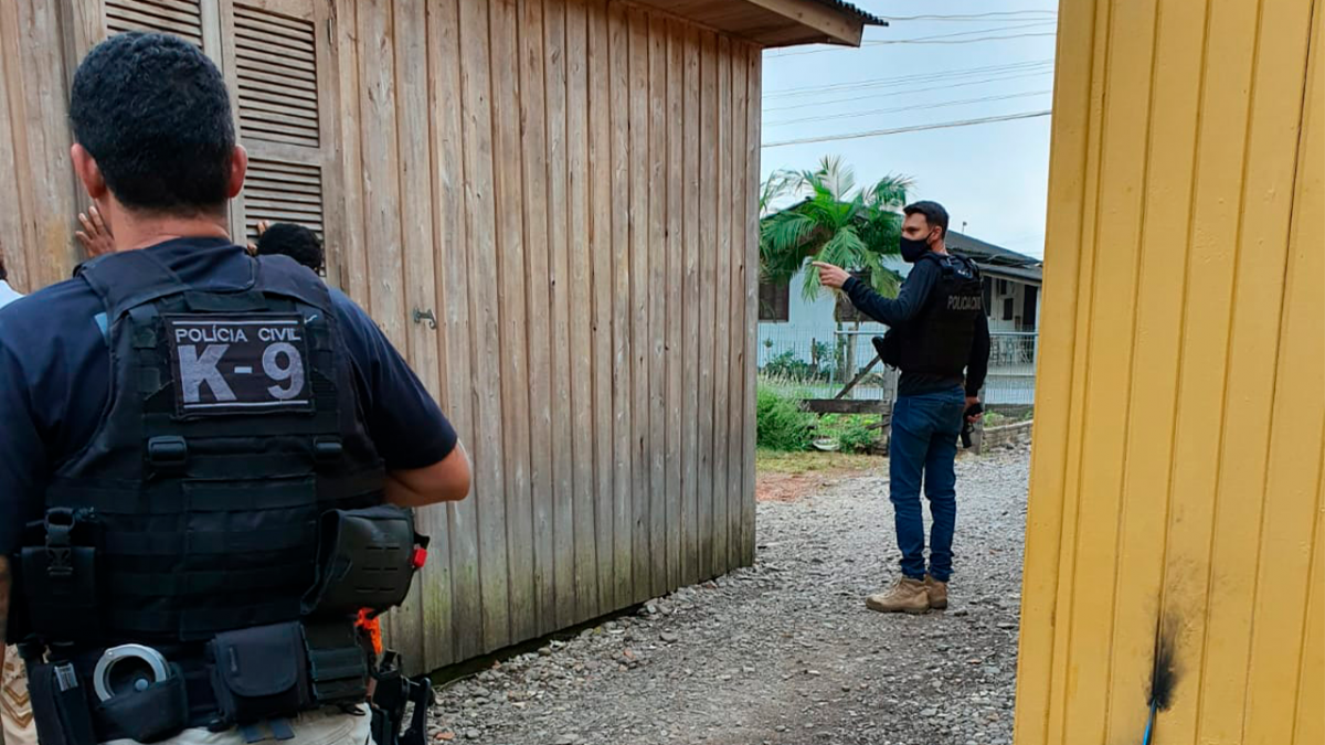 Ao todo, 16 policiais civis das delegacias de Turvo, Ermo, Jacinto Machado, Timbé do Sul, Sombrio e o Canil K9 da Polícia Civil de Lages, deram cumprimento a 05 mandados de busca e apreensão e dois mandados de prisão temporária nas cidades de Timbé do Sul e em Turvo.