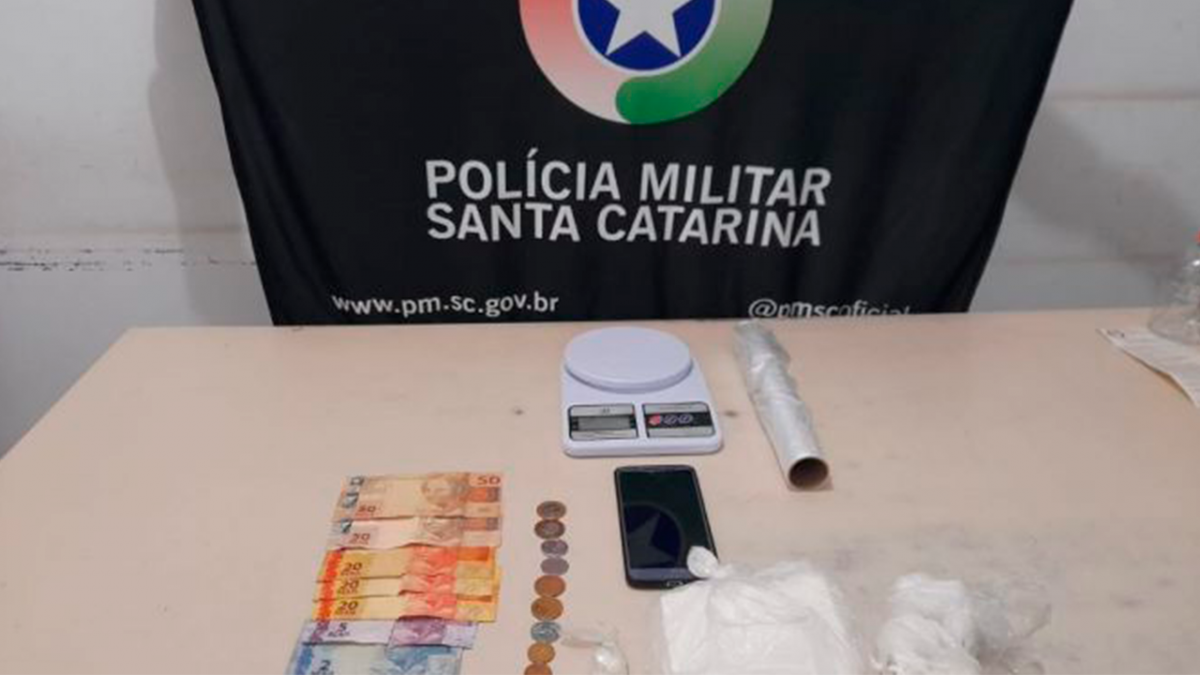 Ao realizar a abordagem o acusado de tráfico de drogas retornou para o interior de sua residência, e o segundo indivíduo, trajando calça de moleton escura, entrou também para o interior do pátio, pulando o muro da lateral da casa, não sendo mais visualizado. No pátio da residência, os policiais militares encontraram uma porção de cocaína pesando 4 gramas. O traficante ainda tentou disfarçar e deitou no sofá da casa que estava com a porta aberta.