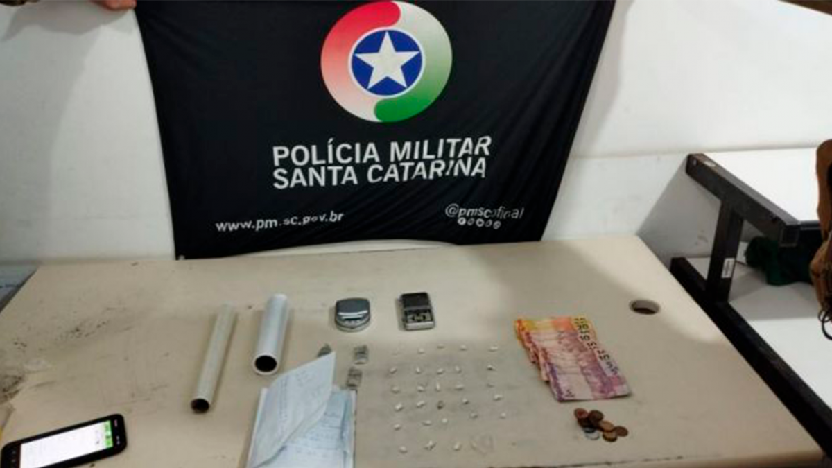 O mesmo já é conhecido da guarnição por ser usuário de crack. Além disso, o suspeito de traficar na área, ao visualizar os policiais militares, dispensou os entorpecentes no chão. Em ato contínuo, na posse do suspeito e em sua residência, a guarnição localizou duas balanças de precisão, um caderno de anotações, dinheiro em espécie em várias cédulas de 10 e 20 reais, dois pacotes para embalar as drogas, e 8,3 gramas de maconha embaladas em quatro partes.