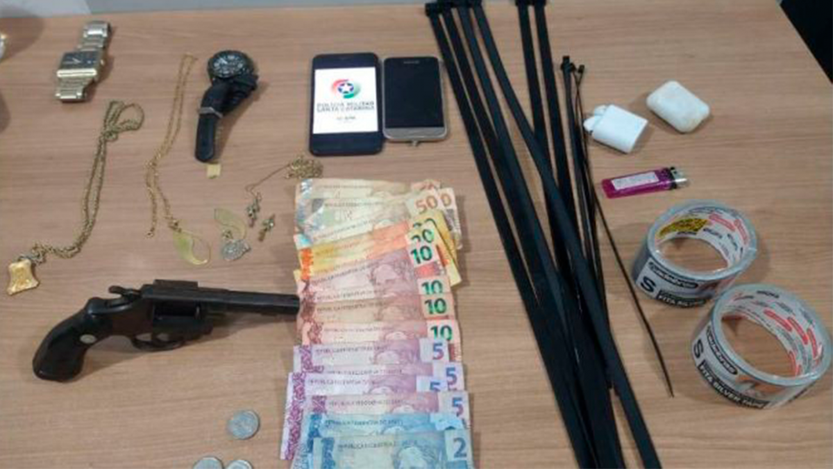 Logo após a abordagem do veículo e prisão do autor do roubo, a polícia militar apreendeu a arma usada no crime, um revólver calibre 32 que estava com seis munições, o veículo, dinheiro, e os pertences da família. A polícia localizou mais duas munições do mesmo calibre, no bolso da calça do assaltante. A colisão provocou danos no veículo roubado e na viatura da polícia militar.