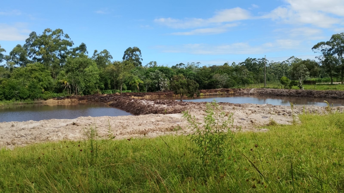 Volta do Silveira: manutenção com aplicação de material em vários pontos da estrada até o Rio dos Anjos, roçada nas laterais e manutenção de açude.