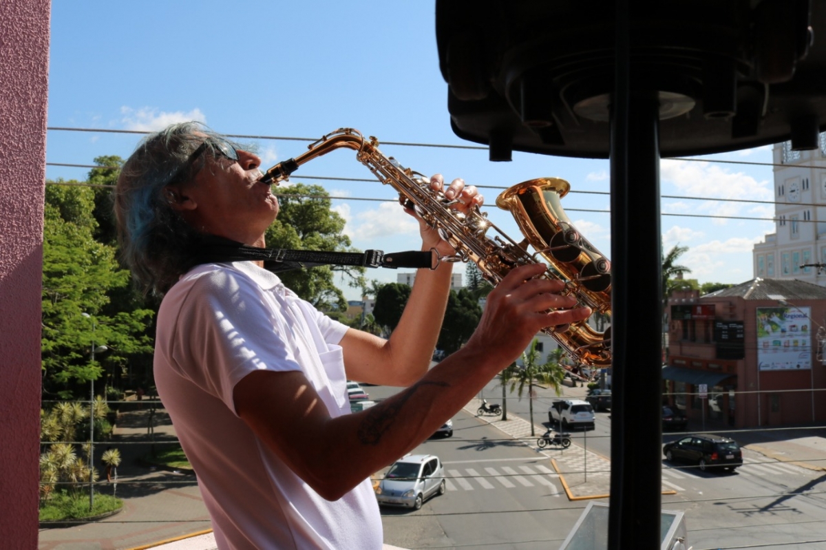 Músicos locais se apresentam na sacada do Museu Histórico
