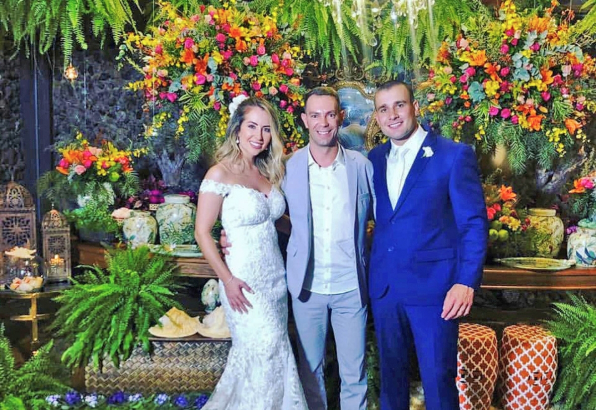 O Bombeiro Militar araranguaense Mateus Maciel e sua bela Sarah Guerra reuniram familiares e amigos no último sábado, numa cerimônia digna de cinema, na Praia do Estaleiro em Porto Belo. Na foto o casal com o amigo Maykon Sousa.