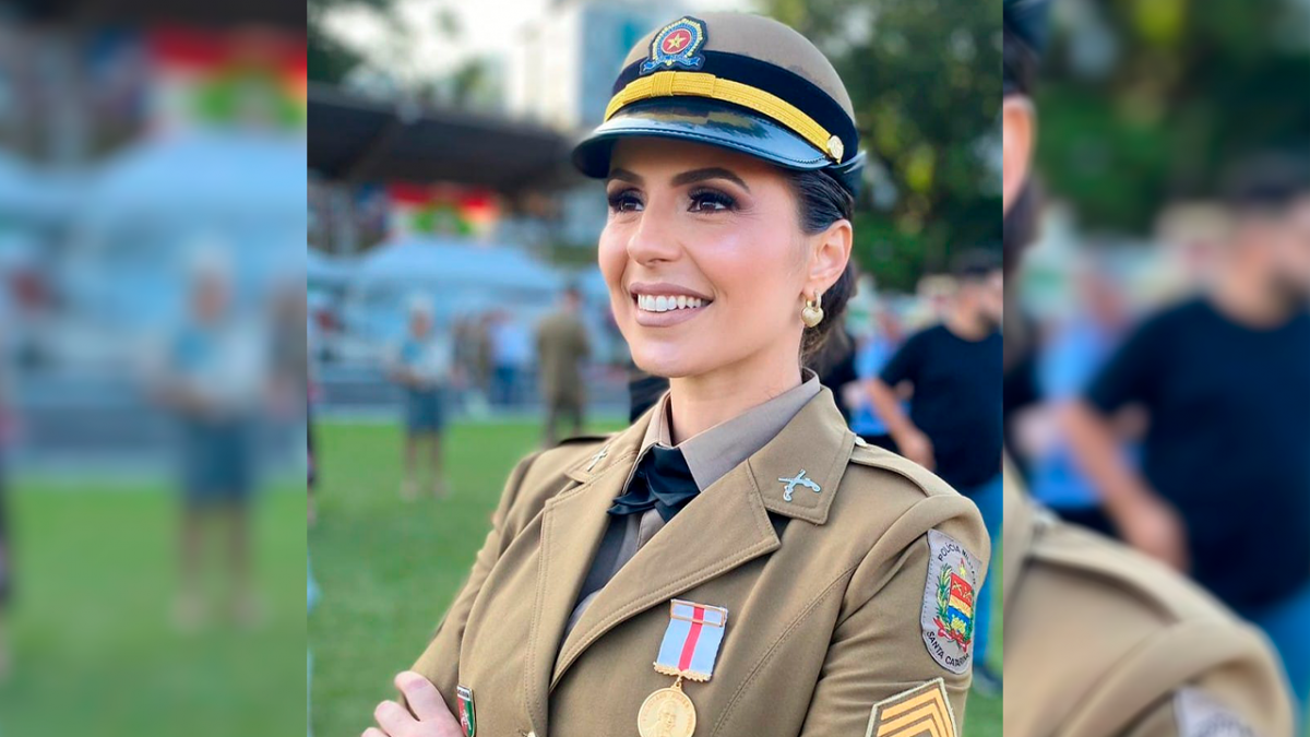 Primeira colocada geral no curso de formação de sargentos da PMSC 2022, 3° sargento a araranguaense Franciane Bitencourt que recebeu a medalha Feliciano Nunes Pires categoria Ouro das mãos do Comandante Geral da PMSC. Parabéns Fran!