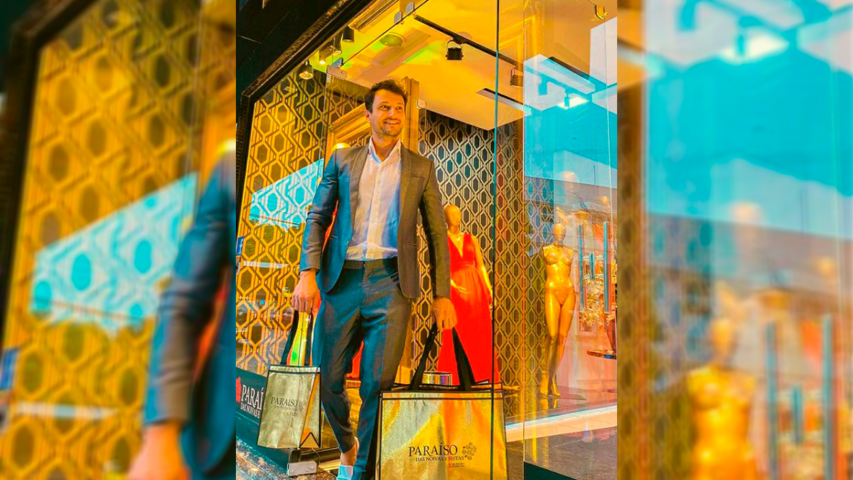O Mister Santa Catarina 2022 Fernando Padilha com look elegante e despojado da Loja Paraiso das Noivas que se destaca como a melhor loja de trajes em Araranguá para festas e eventos especiais.