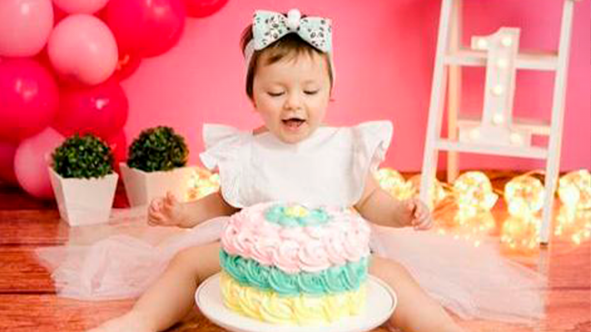 Eloá foi só gostosura no seu Smash the cake no Studio F2 Kids, os papais João e Adriana Bochanoski são só orgulho.