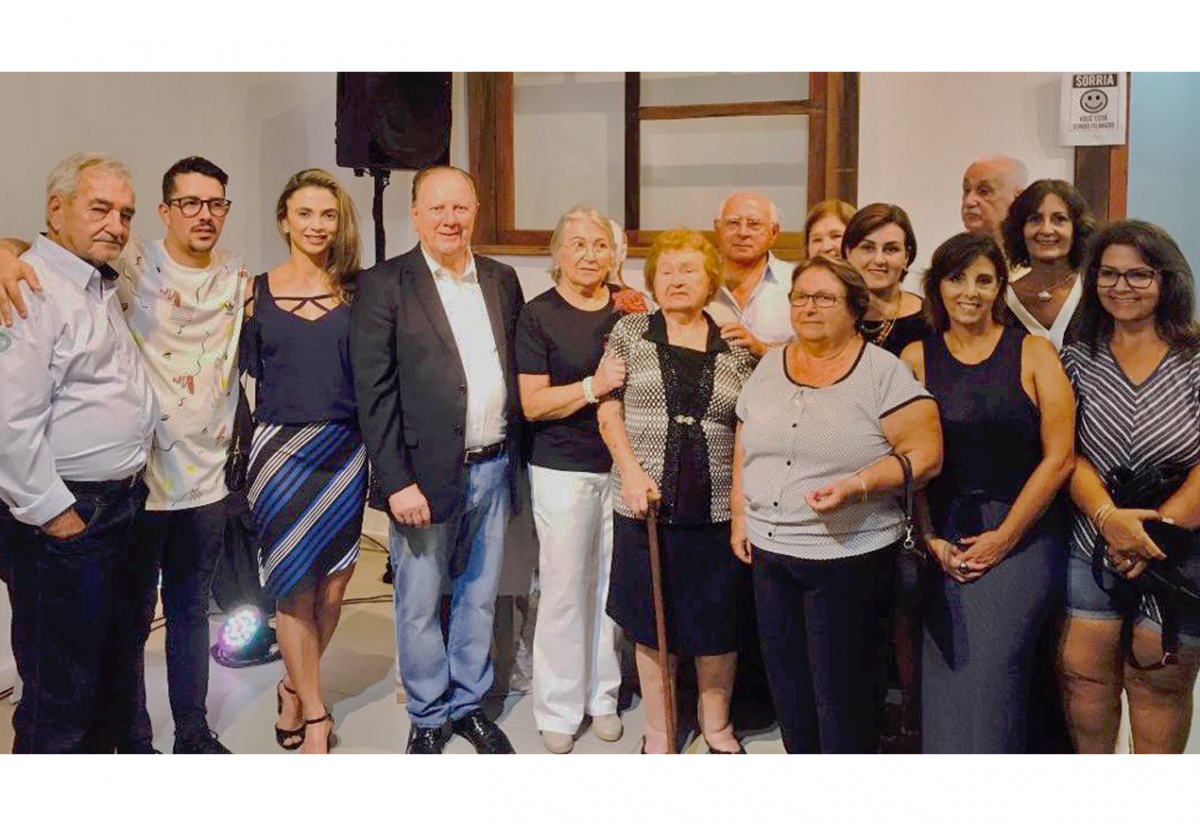 Prefeito de Araranguá Mariano Mazzuco sendo emoldurado pela secretária da Educação Ariane Almeida, o artista João Miot, empresário Alveri Sá expondo suas relíquias Relicar e familiares do primeiro telegrafista “Bernadino Sena Campos”.