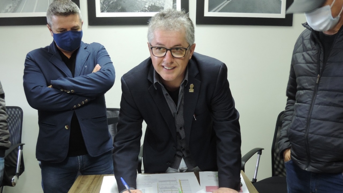 TURVO - O prefeito Tiago Zilli e o vice-prefeito Edson Jair Dagostin (Piska), entregaram na manhã desta quarta-feira (17/6), a ordem de serviço para dois lotes do projeto Avançar Cidades. As empresas JR Construções e Setep já estão autorizadas a iniciar as obras.