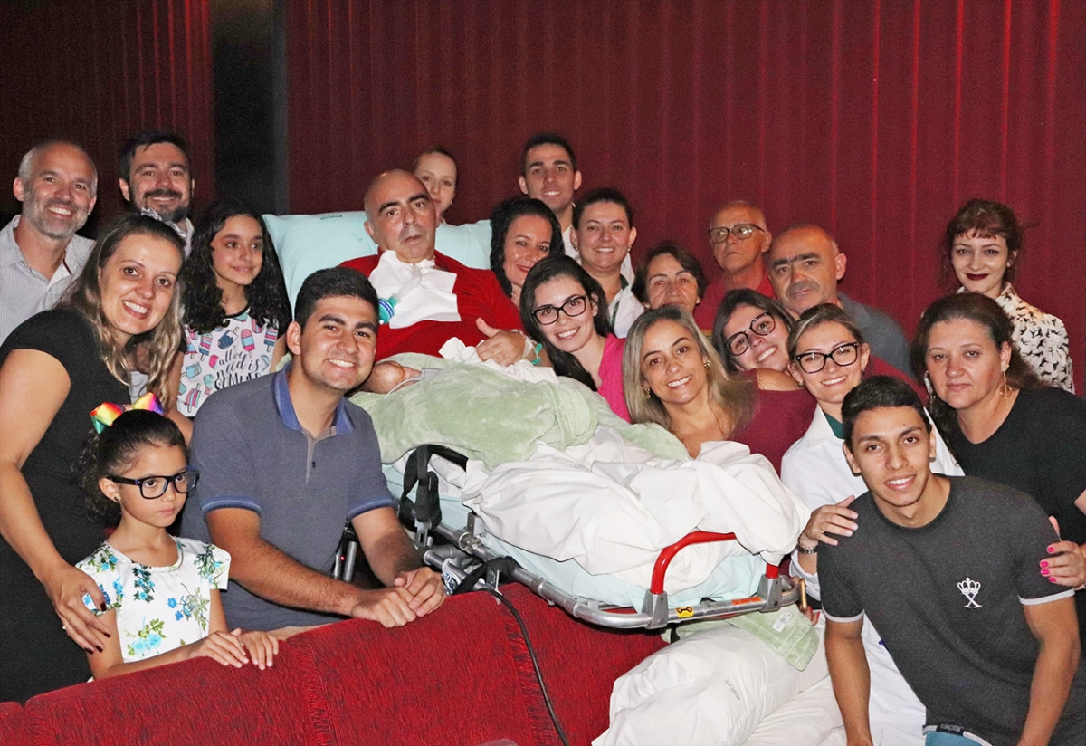 A ação fez parte do Comissão de Cuidados Paliativos, do Sistema de Gestão de Qualidade da Unimed Criciúma e contou com o envolvimento de uma equipe multidisciplinar. O paciente foi transportado pela ambulância da instituição hospitalar e conduzido até a sala do cinema em cima de uma maca. A família, que reside em Balneário Arroio do Silva, participou da surpresa. Compareceram a esposa e as filhas, os pais de Carlos e seus irmãos, entre demais colaboradores da Unimed.