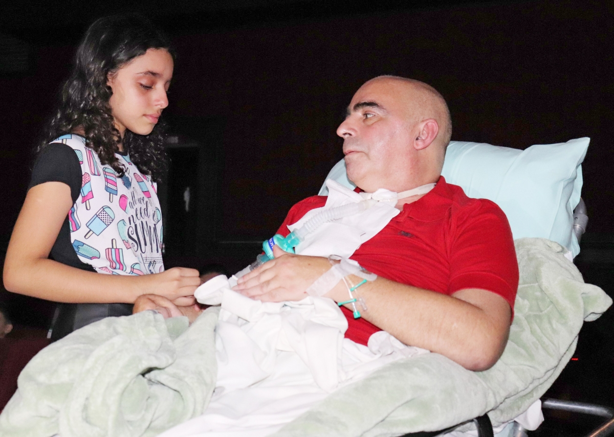 O filme da sessão das 17h, da última quinta-feira, dia 28, no Cine Criciúma 1, foi Cinderela Pop. Mas, quem roubou a cena e emocionou o público presente foi o contabilista Carlos Roberto Bernardino, 55 anos, e sua filha Manuela. O pai possui doença neurológica e está internado no Hospital Unimed há quase dois meses. Para realizar a surpresa à garota que completou 10 anos neste dia, uma equipe multidisciplinar foi mobilizada para levar o paciente até o cinema, onde estava a menina.